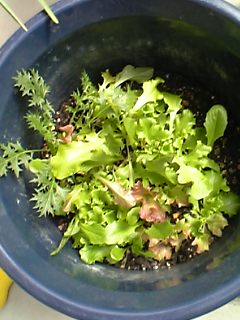 先週ボウボウになっていたサラダミックス、ついに収穫しました!